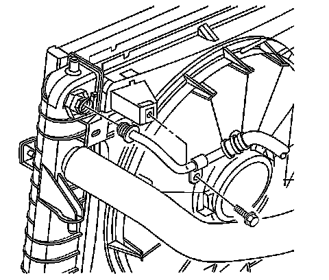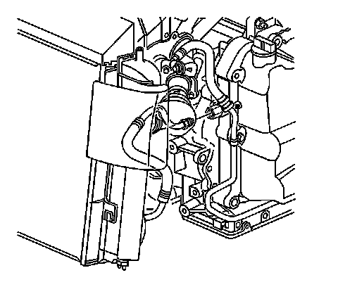 23. Install the upper transaxle oil cooler pipe to the radiator. Refer to Transmission Fluid Cooler Hose/Pipe Replacement (Service and Repair).
