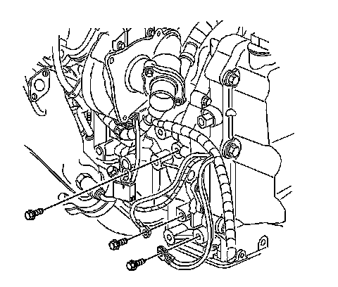 22. Connect the lower transaxle oil cooler pipe to the transaxle. Refer to Transmission Fluid Cooler Hose/Pipe Replacement (Service and Repair).
