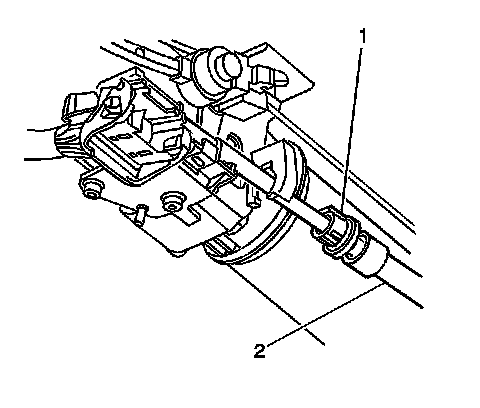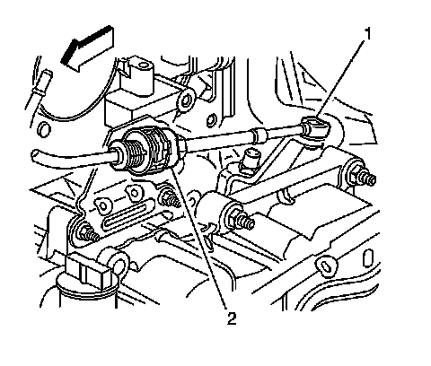 8. Press the locking tabs (1) inward in order to release the transaxle range selector cable (2) from the bracket.