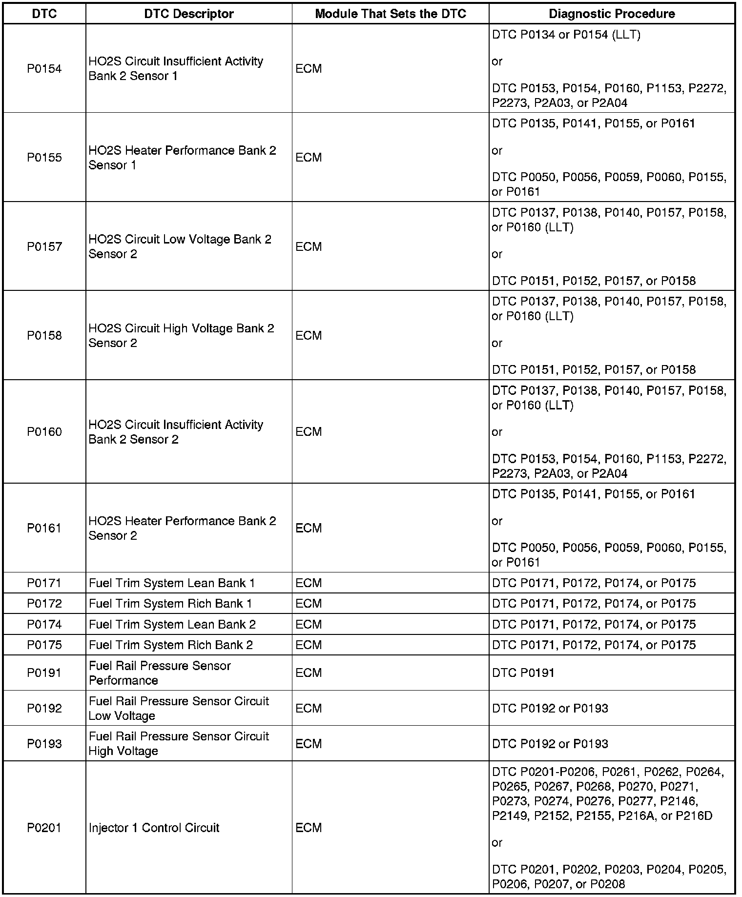 P0154 - P0201: