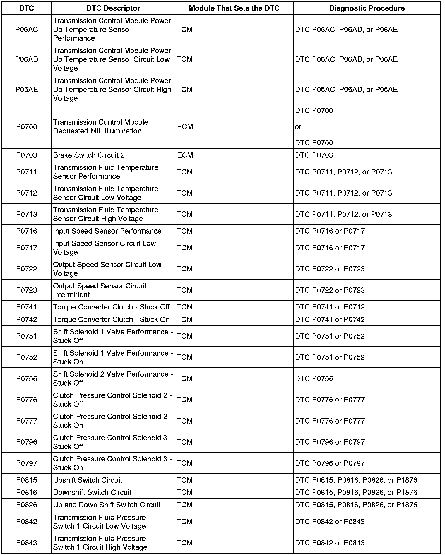 Diagnostic Trouble Code (DTC) List - VehicleThis master DTC list includes all applicable DTCs in alphanumeric order with descriptors.