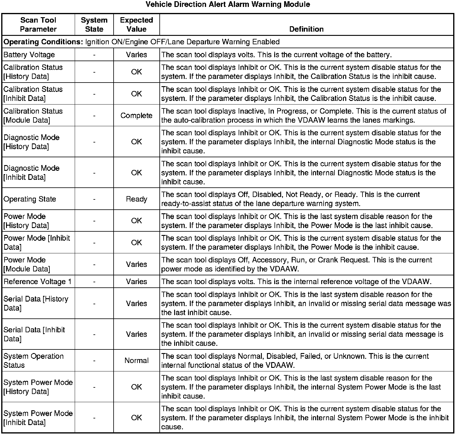 Vehicle Direction Alert Alarm Warning Module Scan Tool Information