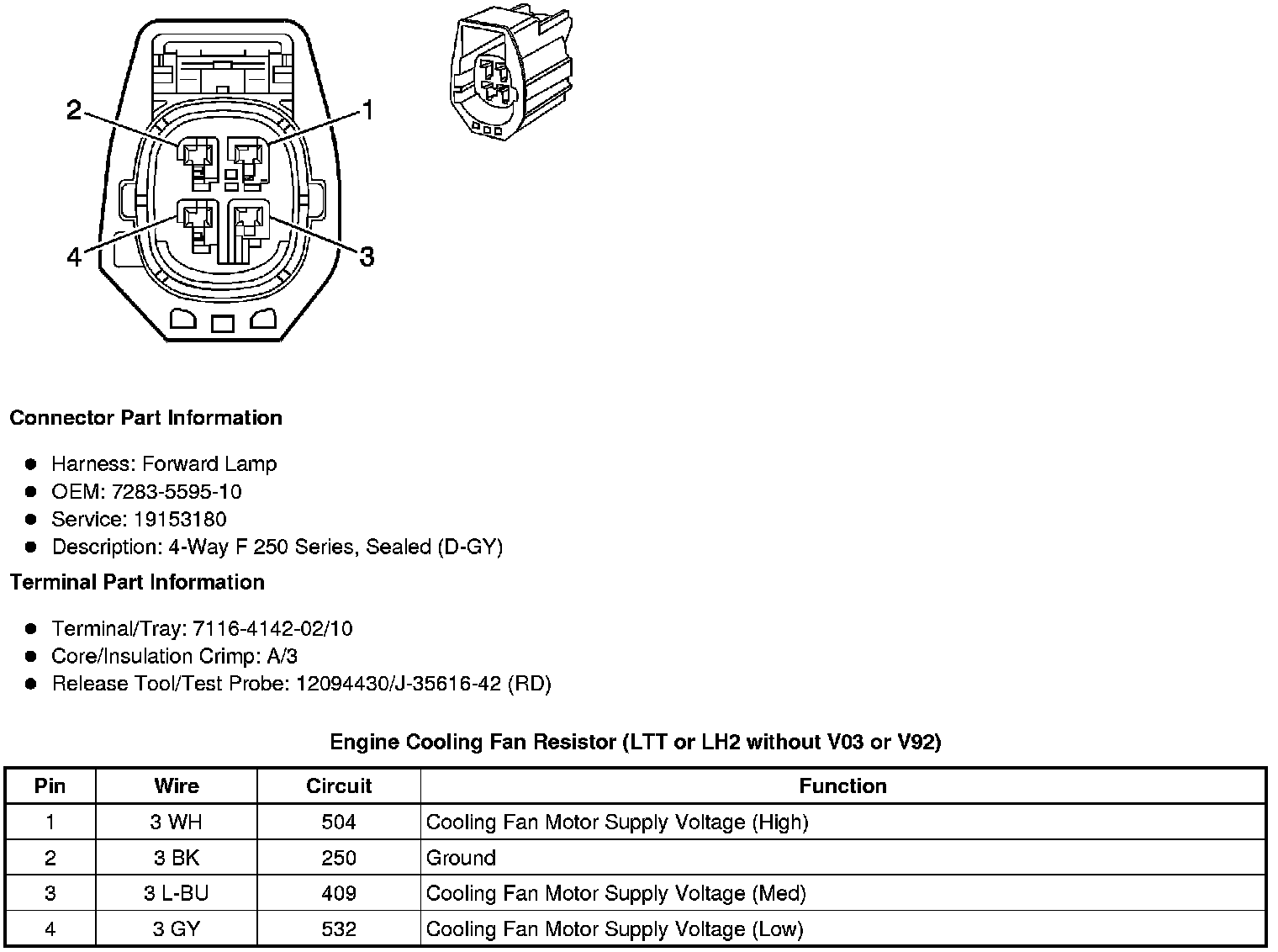 Engine Cooling Fan Resistor (LTT or LH2 without V03 or V92)