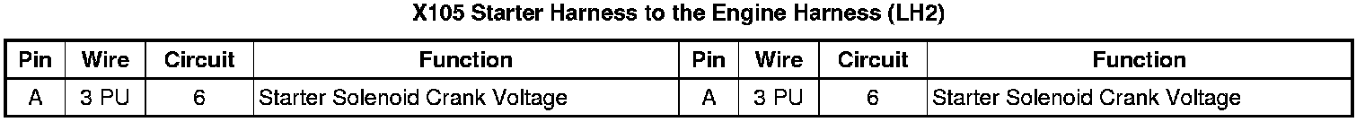 X105 Starter Harness to the Engine Harness (LH2)