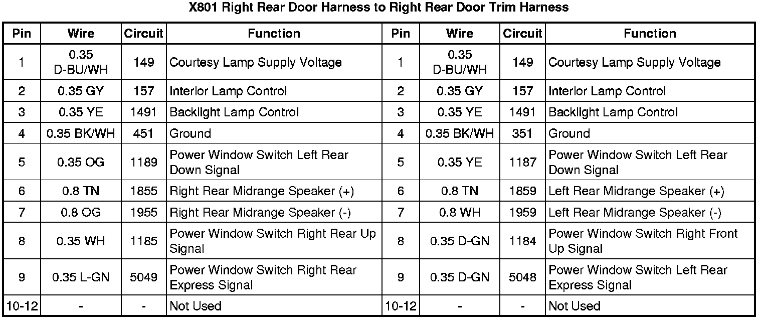 X801 Right Rear Door Harness to Right Rear Door Trim Harness