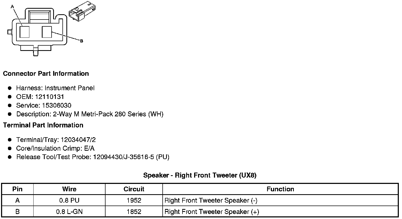 Speaker - Right Front Tweeter (UX8)