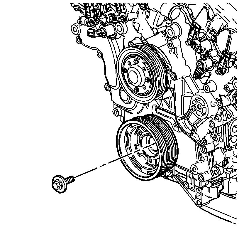 1. Remove the A/C compressor and power steering pump drive belt. Refer to Water Pump and Generator Belt Tensioner Replacement (Water Pump and Generator Belt Tensioner Replacement).