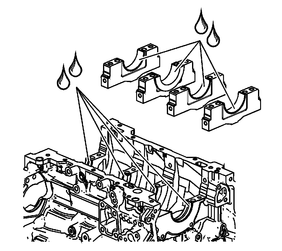 23. Apply a liberal amount of crankshaft prelube or clean engine oil to the upper and lower bearing surfaces. Refer to Adhesives, Fluids, Lubricants, and Sealers (Adhesives, Fluids, Lubricants, and Sealers) for recommended lubricant.