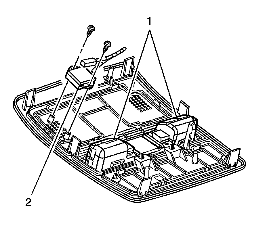1. Remove the overhead console. Refer to Roof Console Replacement (Roof Console Replacement).