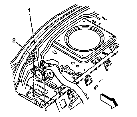 4. Remove the rear trim shelf panel. Refer to Rear Window Shelf Trim Panel Replacement (Rear Window Shelf Trim Panel Replacement).