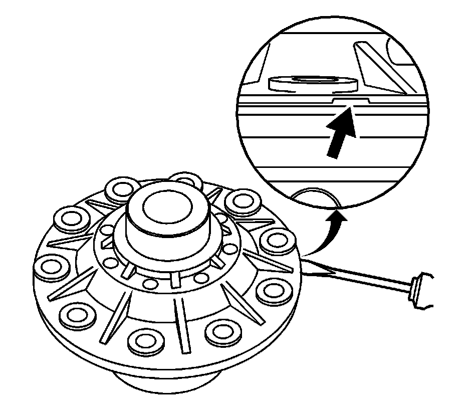 2. Using the J 22912-B and a press, remove the left side bearing. It may be necessary to cut the cage and remove the rollers so the tool will grip the race.