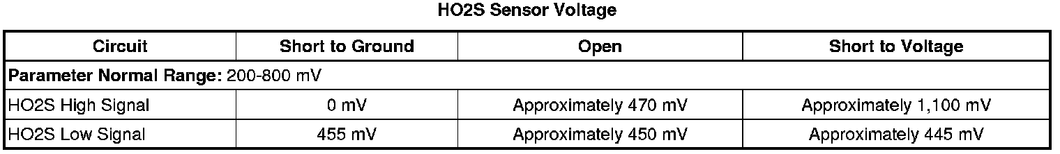 * The post-catalyst oxygen sensors value should change more than 200 mV when the throttle is quickly cycled 3 times from closed to wide open and back to closed after running the engine at 1,500 RPM for 30 seconds.