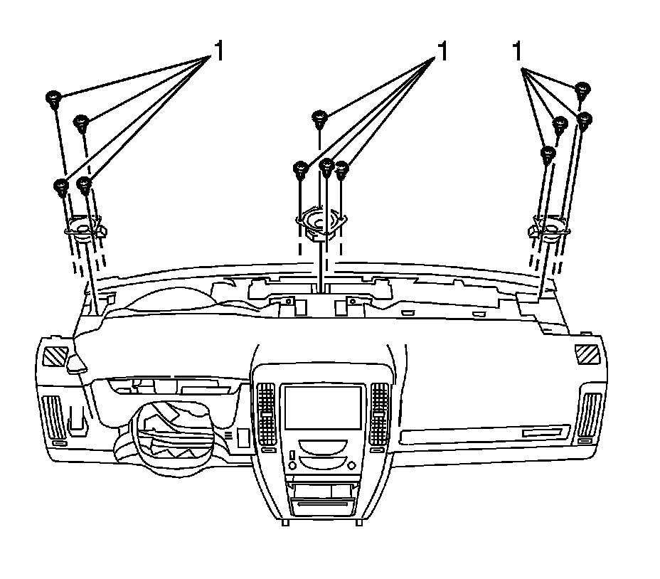 2. Install the screws (1) securing the speaker to the I/P and tighten to 2 Nm (18 lb in).