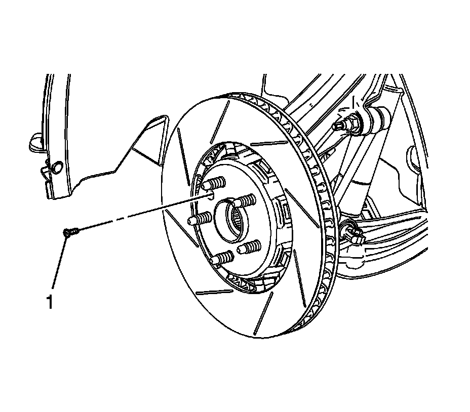 8. Remove the brake rotor screw (1).