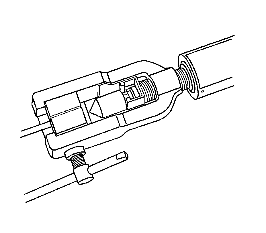 3. While holding the brake pipe firmly against the stripping tool roller ledges, rotate the thumbwheel of the tool until the blade contacts the brake pipe coated surface.