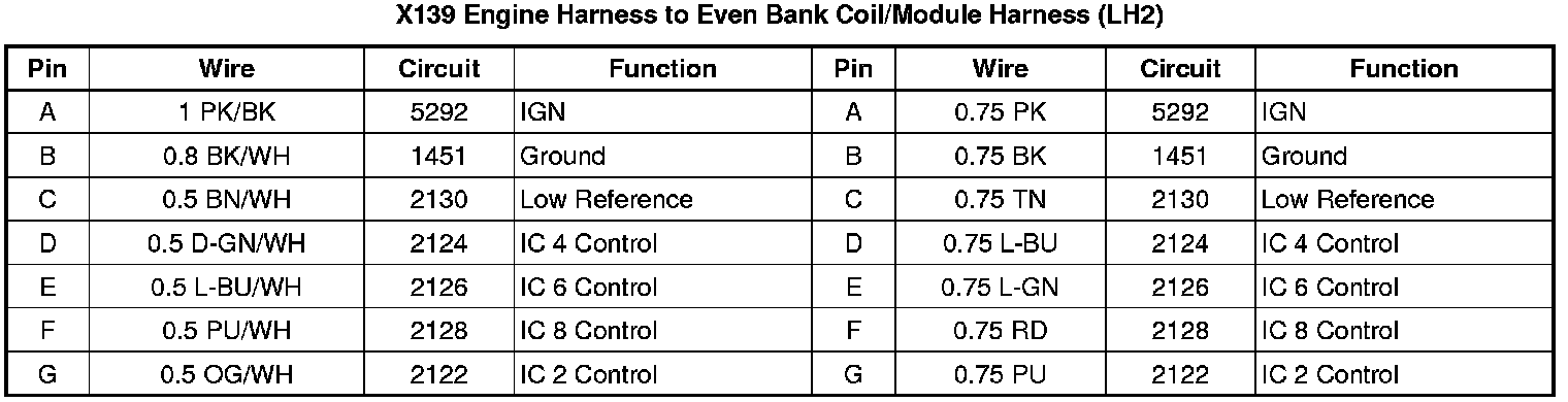 X139 Engine Harness to Even Bank Coil/Module Harness (LH2)
