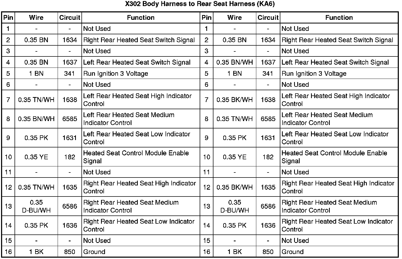 X302 Body Harness to Rear Seat Harness (KA6)
