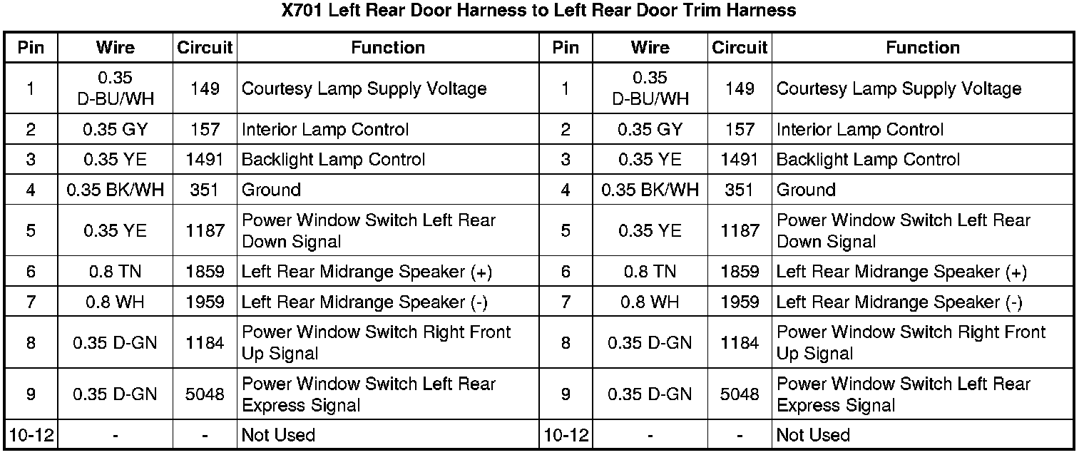 X701 Left Rear Door Harness to Left Rear Door Trim Harness