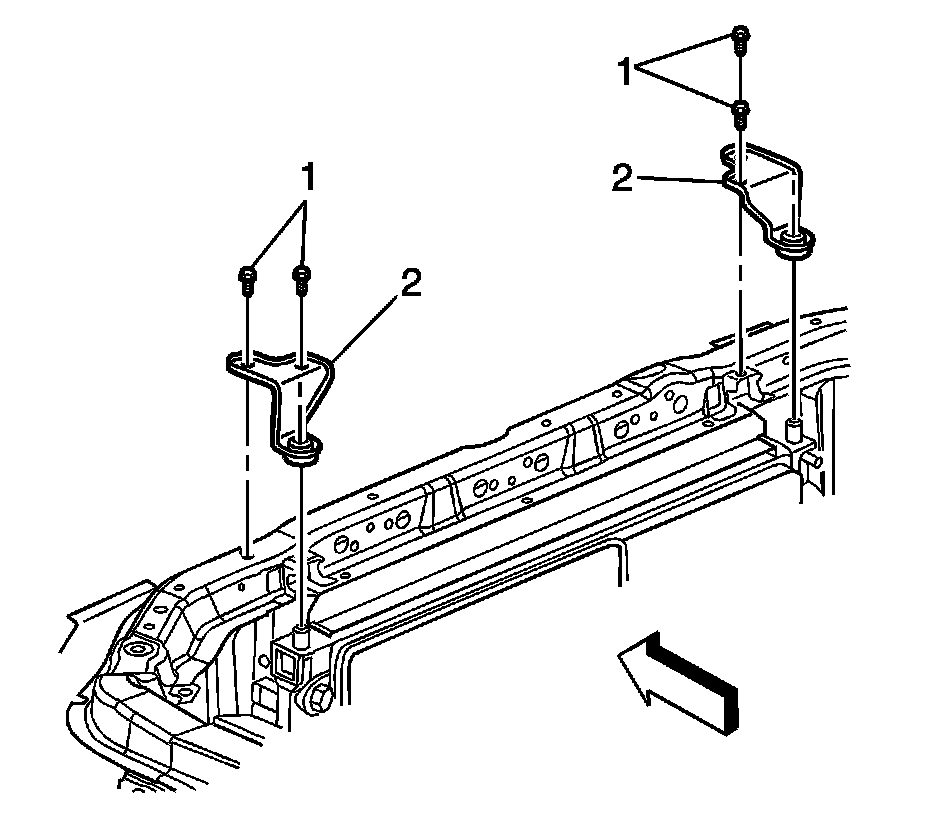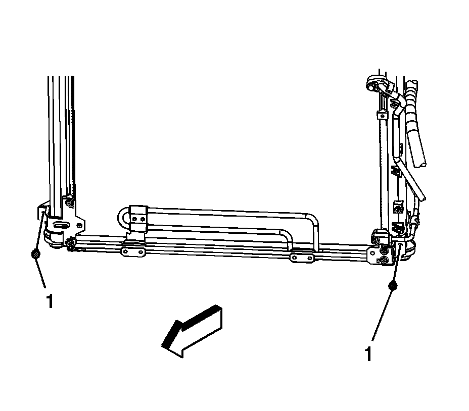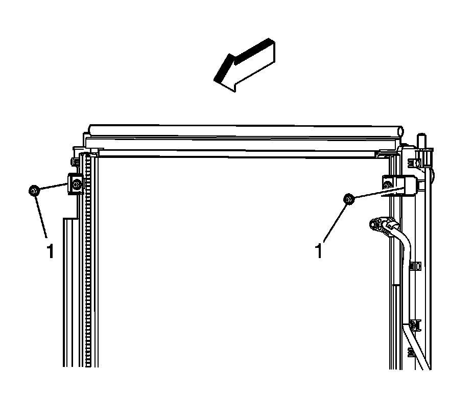 4. Install the radiator support bracket bolts (1) and tighten to 9 Nm (80 lb in).
