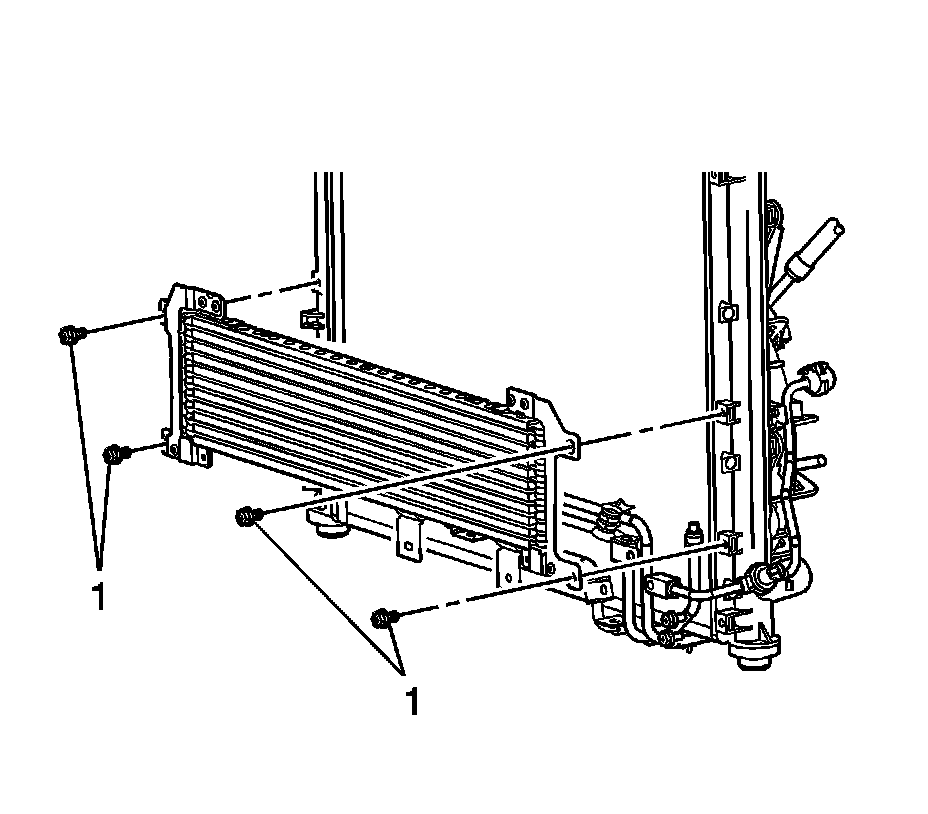 Note: Reposition the condenser to access the transmission oil cooler mounting bolts.
