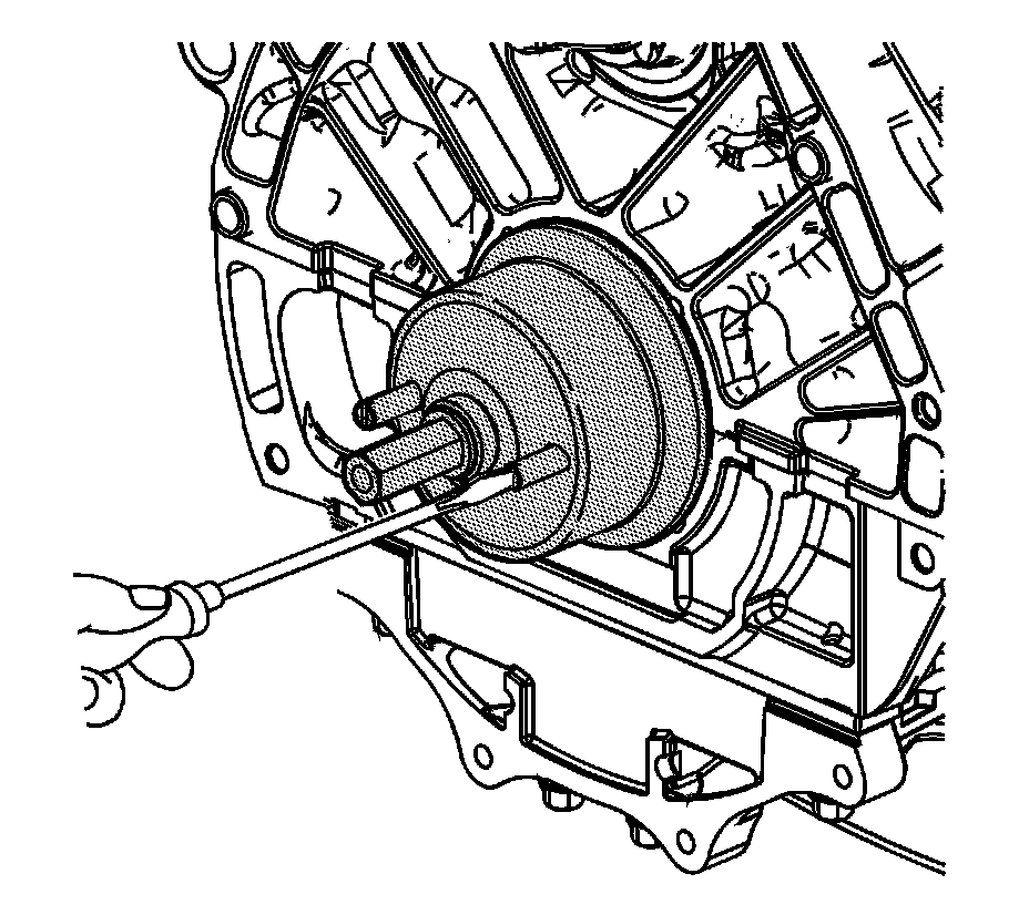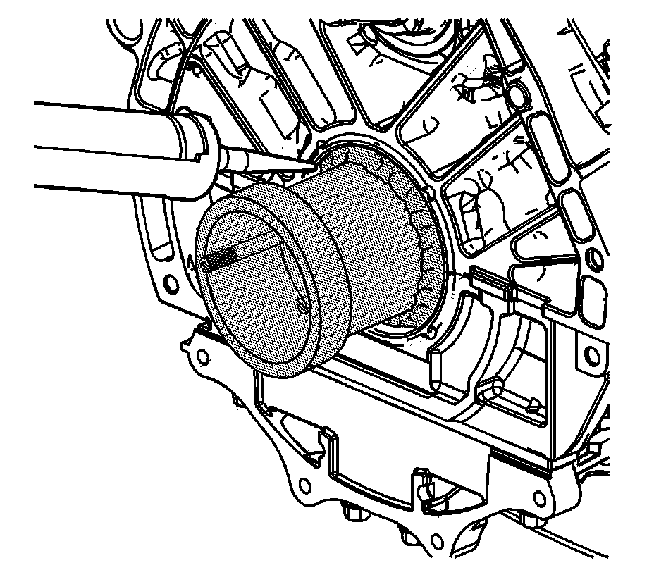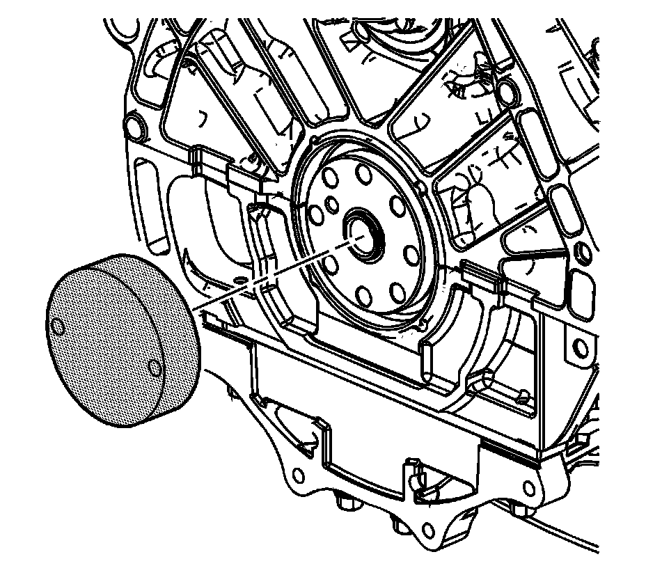Caution: The cassette seal is installed onto the crankshaft with a press fit that requires over 135 Nm (100 lb ft) of force to remove or install. This high force requires the use of special tools to remove and install the seal. Use of any other tools during removal or installation can lead to damage to the seal or other components. An improperly installed or damaged seal can leak oil and can lead to engine damage. Use of the J 38817-A to install the cassette seal can damage the tool and cause improper seal installation and/or seal damage.