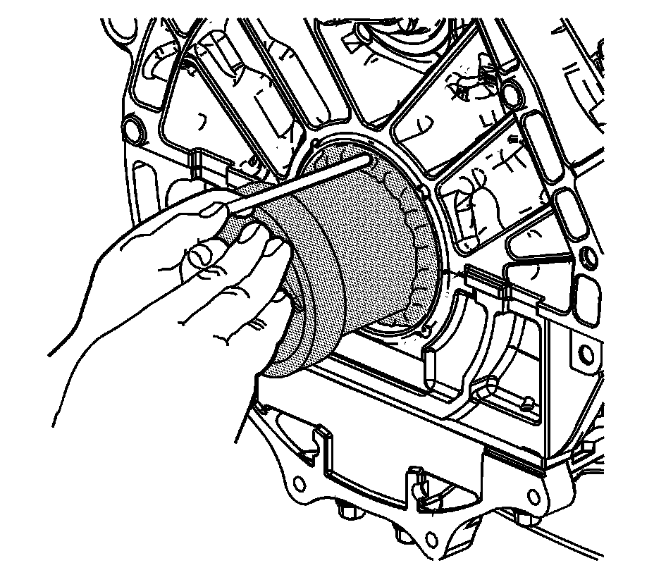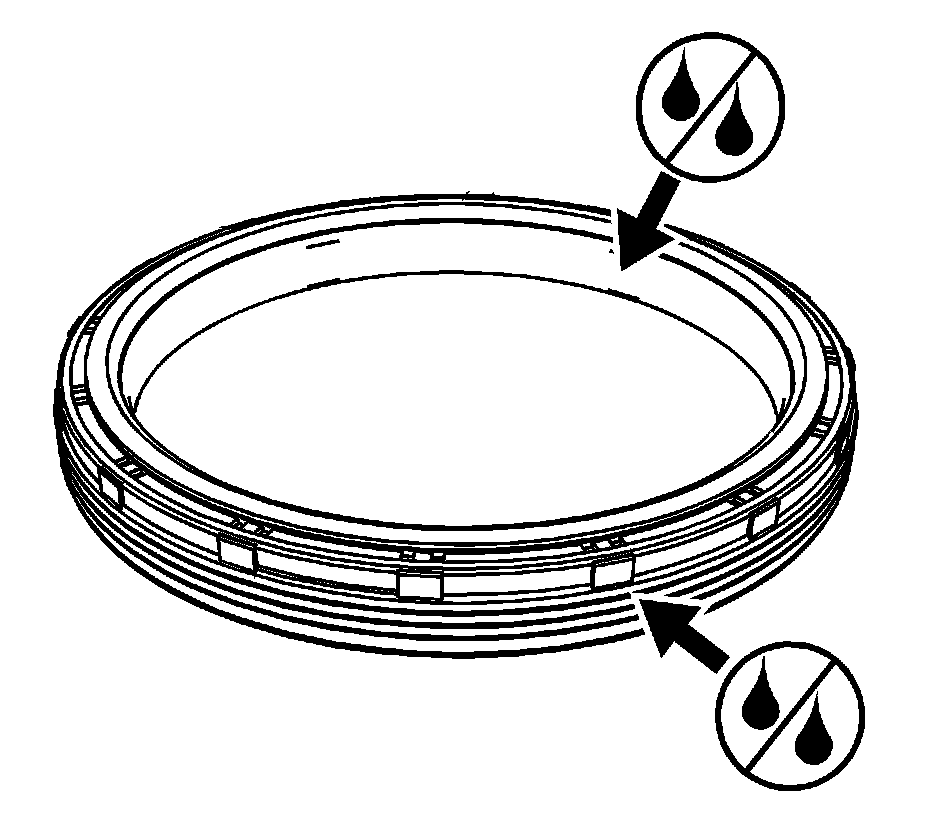Note: DO NOT use any lubricant in order to install the crankshaft rear oil seal. Do not use any lubricant on the coating pre-applied to the inner diameter of the crankshaft rear oil seal. The coating is a sealant that must not be contaminated. Do not use any lubricant on the outer diameter of the crankshaft rear oil seal. The sealant applied to the bore of the engine block will not properly bond to a lubricated crankshaft rear oil seal.