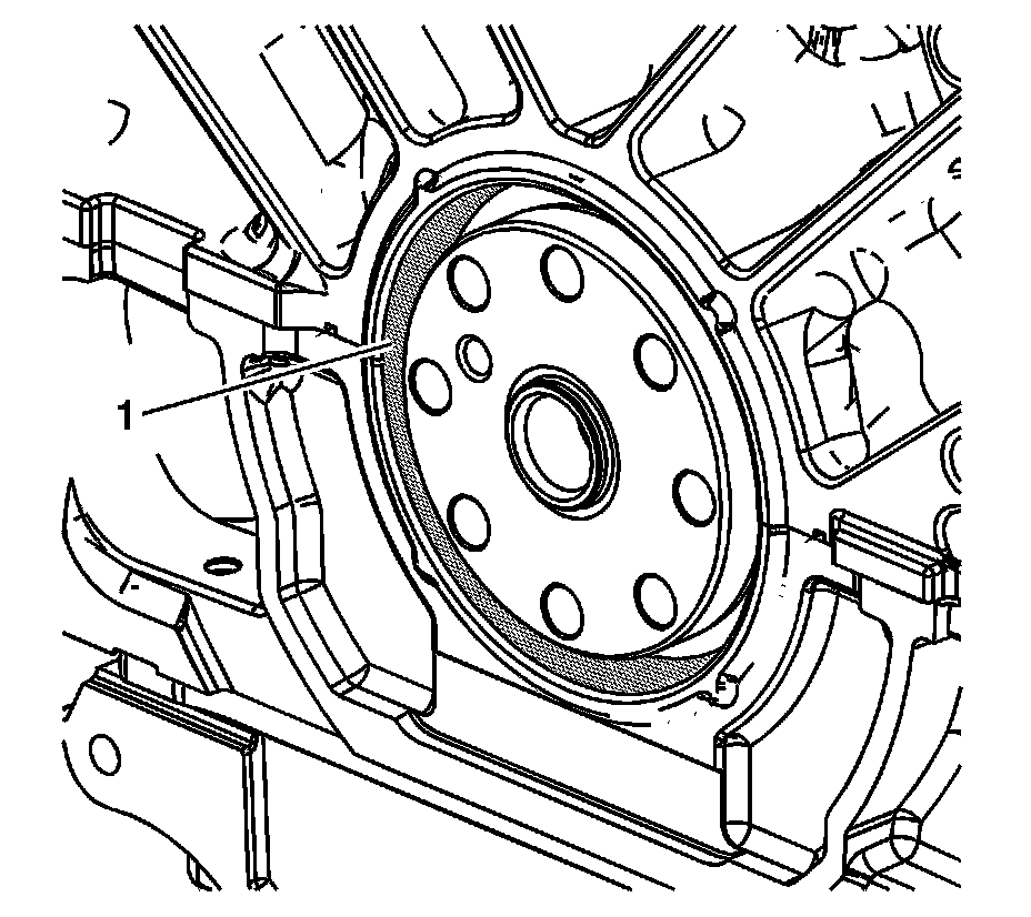 1. Ensure the engine block where the crankshaft rear oil seal is installed is a deep bore (1).
