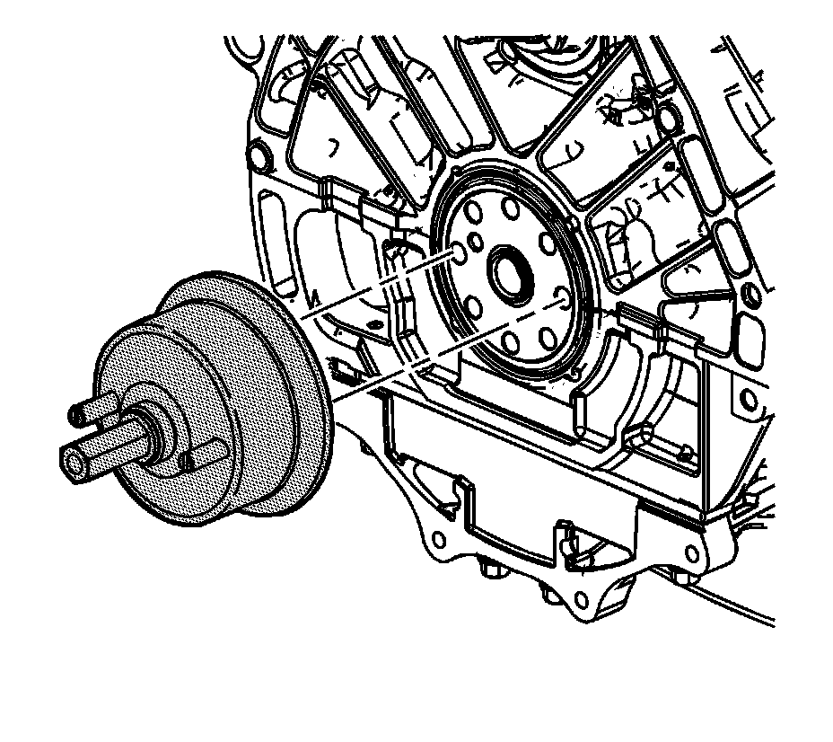 Note: Crankshaft rear oil seal and engine flywheel installation requires adequate space for installation. If the engine stand does not allow suitable space to use the J 45930-A - installer install the crankshaft rear oil seal and engine flywheel with the engine properly supported on the floor or on a bench.
