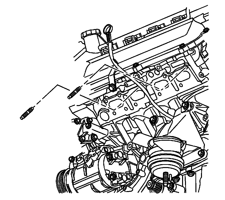 6. Install the left exhaust manifold studs to the left cylinder head and tighten to 6 Nm (53 lb in).