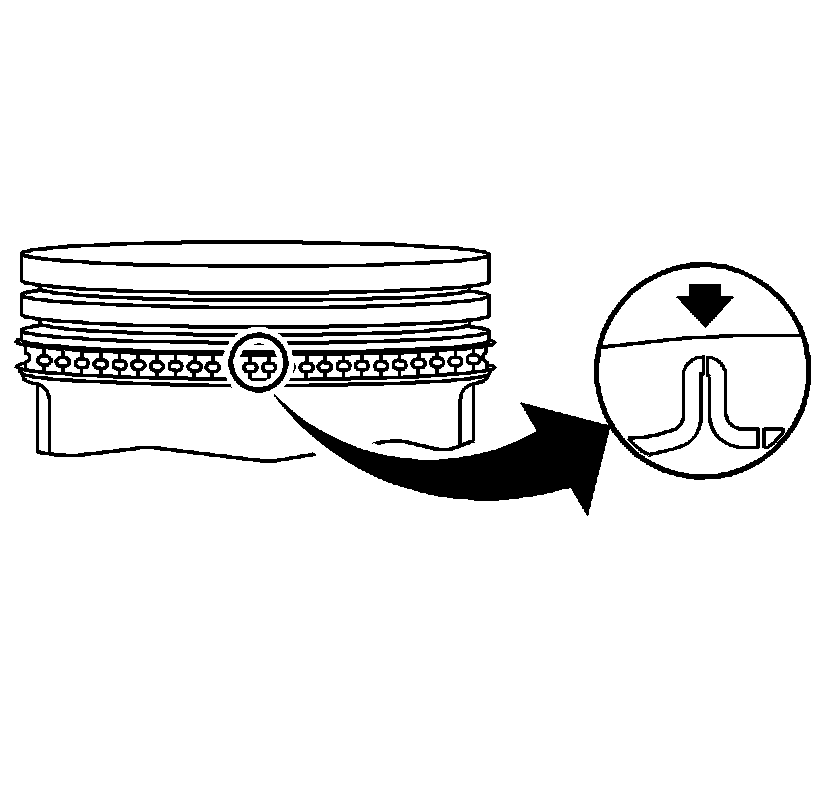 2. Properly orient the oil control ring expander as shown before installation. The ends of the expander must be facing toward the top of the piston.