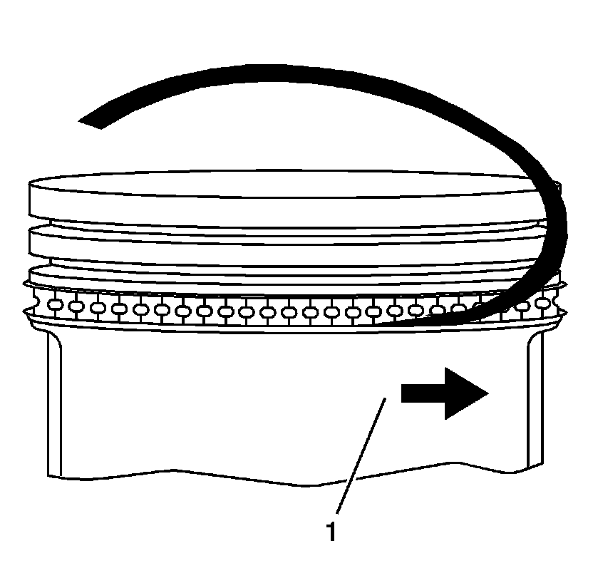 5. Install the upper oil control piston ring onto the piston (1).