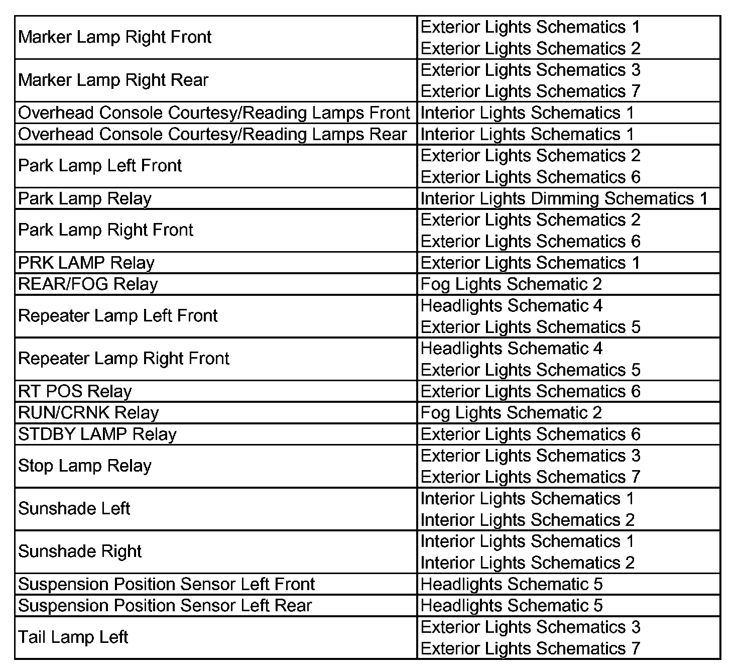 Wiring Schematic Index