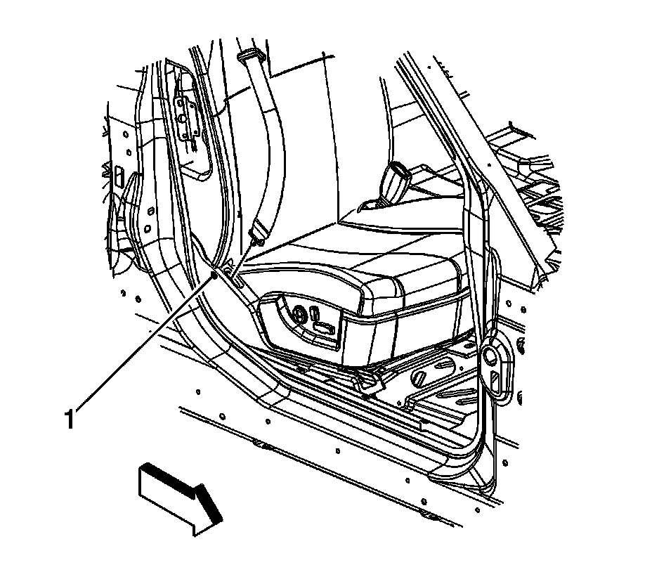 1. Remove the center pillar garnish molding. Refer to Center Pillar Garnish Molding Replacement (Center Pillar Garnish Molding Replacement).