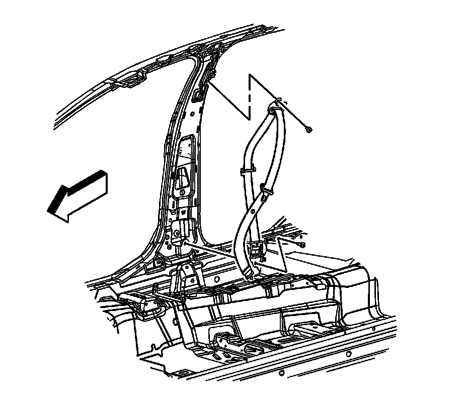 3. Remove the bolts securing the seat belt assembly to the vehicle.