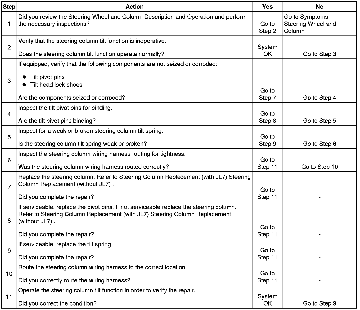 Steering Column Tilt Function Inoperative
