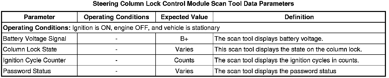 Steering Column Lock Control Module Scan Tool Information