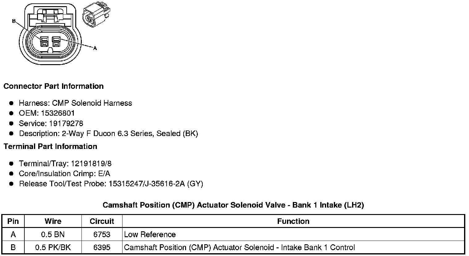 Camshaft Position (CMP) Actuator Solenoid Valve - Bank 1 Intake (LH2)