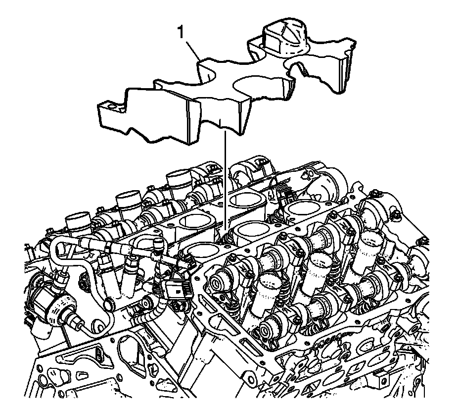 14. Install the fuel rail noise shield (1).