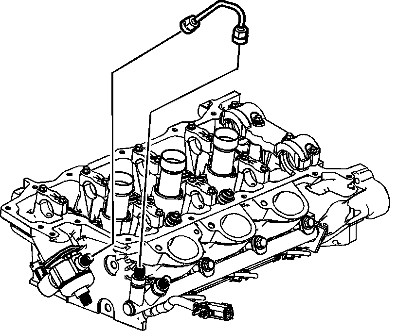 10. Install the NEW LH to RH fuel rail crossover pipe and tighten the fuel rail crossover pipe fittings to 30 Nm (22 lb ft).