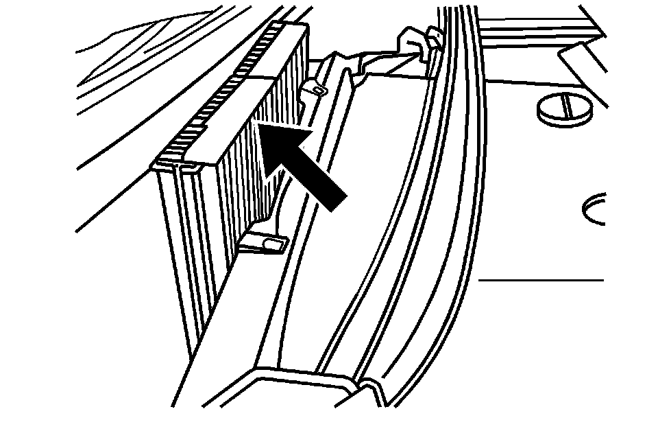 7. Insert the new air filter by sliding it back into place. Make sure the arrow on the filter is pointing toward the passenger compartment.