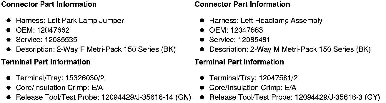 X126 Left Park Lamp Jumper to Left Headlamp Assembly Harness