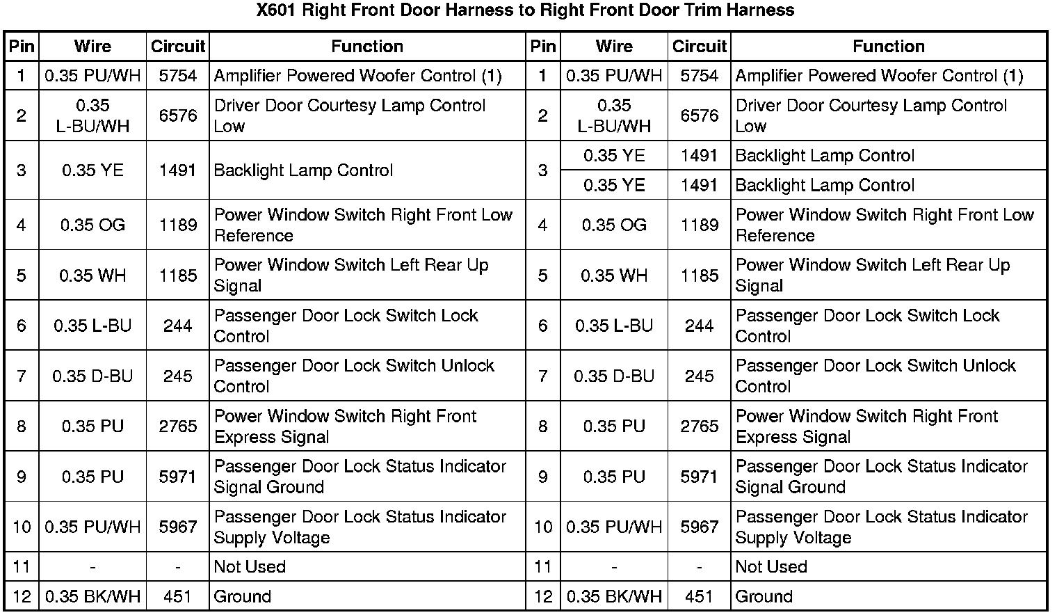 X601 Right Front Door Harness to Right Front Door Trim Harness