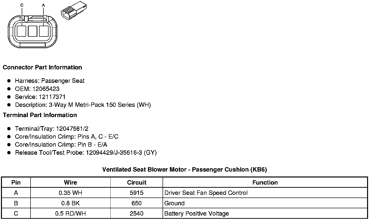 Ventilated Seat Blower Motor - Passenger Cushion (KB6)