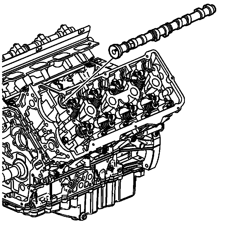 4. Apply a liberal amount of lubricant GM P/N 12345001 or equivalent to the camshaft lobes and the camshaft journals.