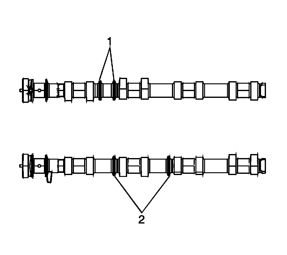 3. Select the proper camshaft by the identifying rings cast into the left intake camshaft (1).