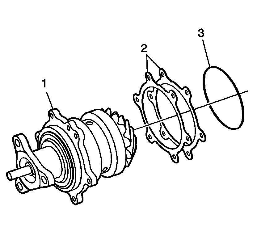 6. Install the selected shims or marked shims (2) on the pinion housing assembly (1) and the O-ring (3).
