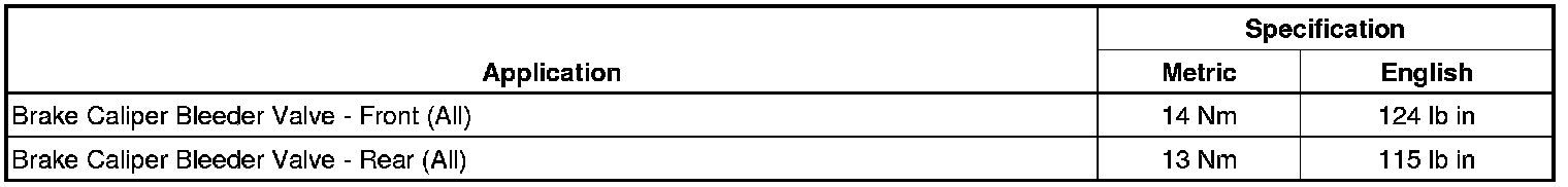 Brake Component Specifications