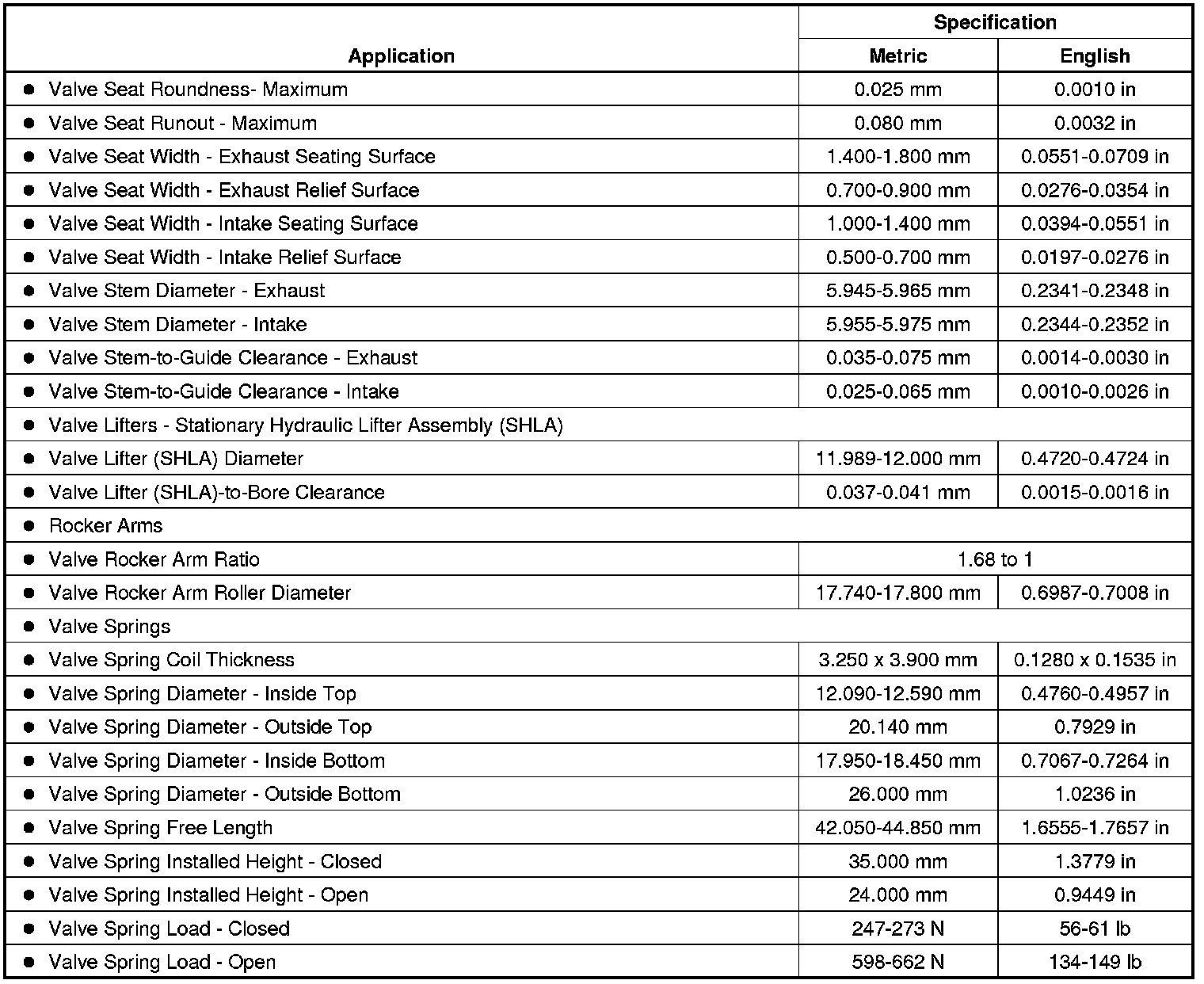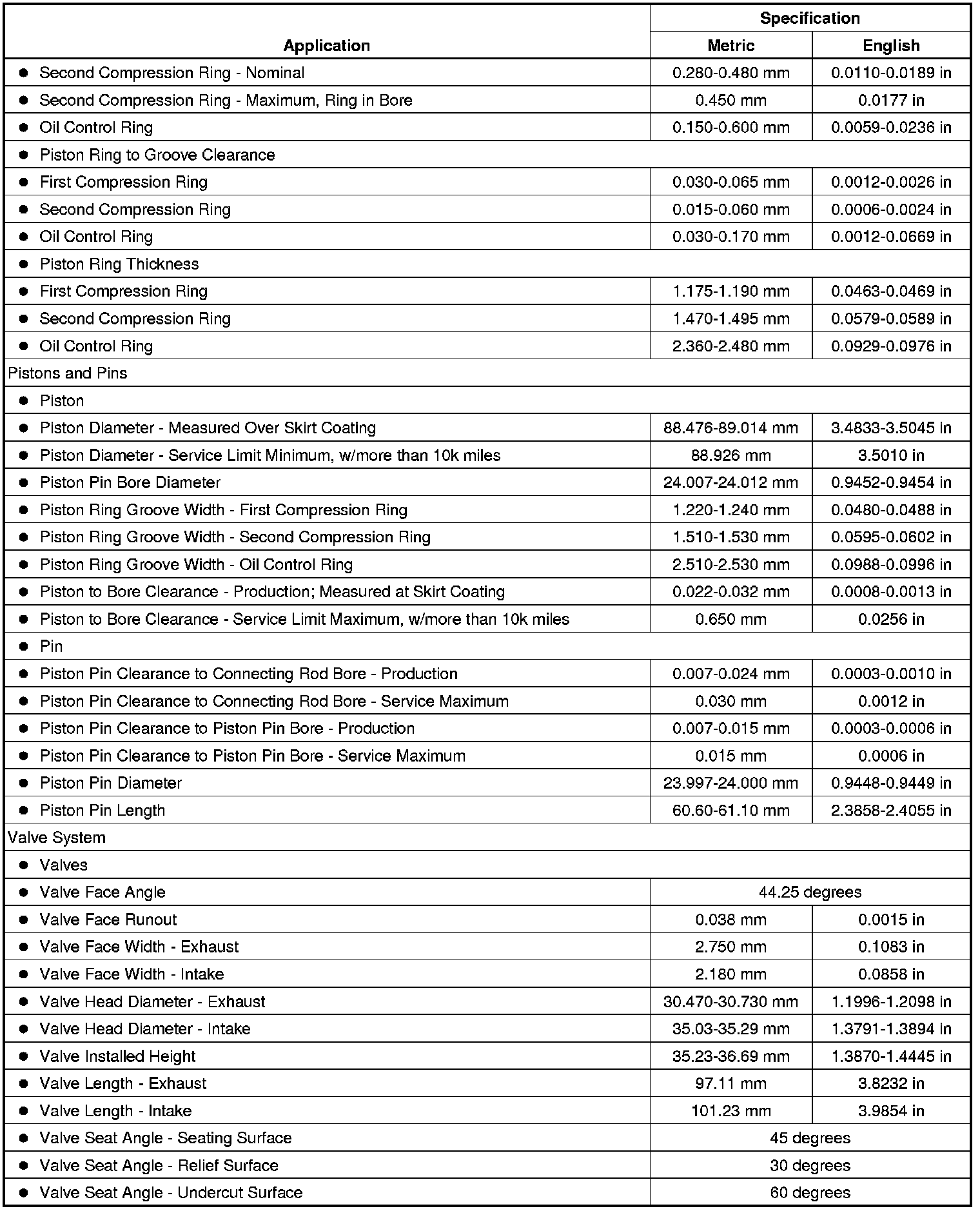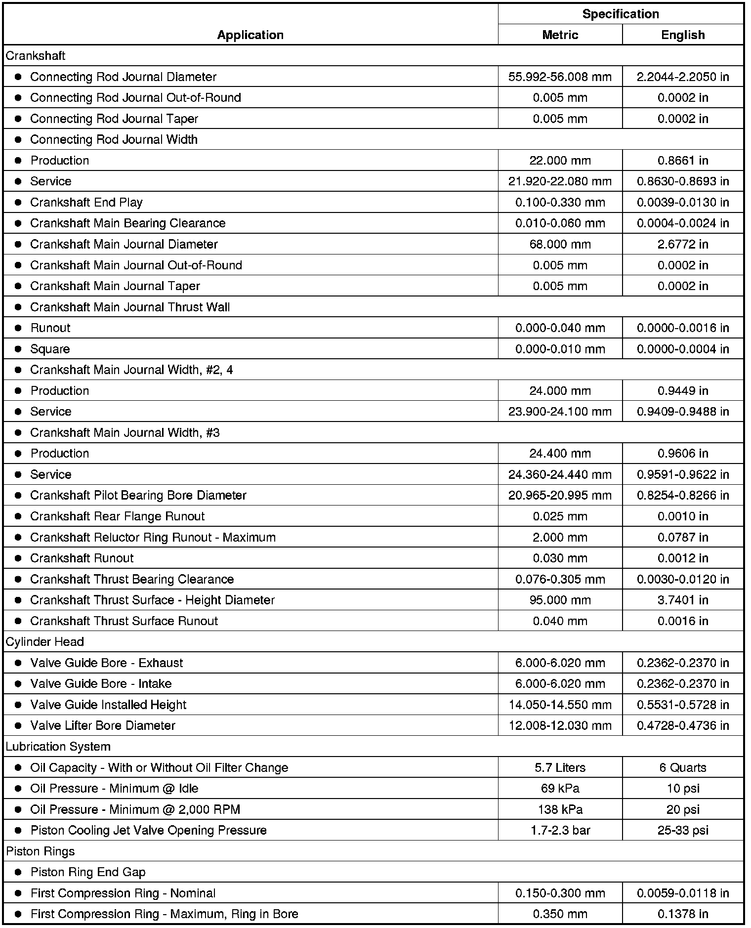 Engine Mechanical Specifications (LF1) (3.0L)