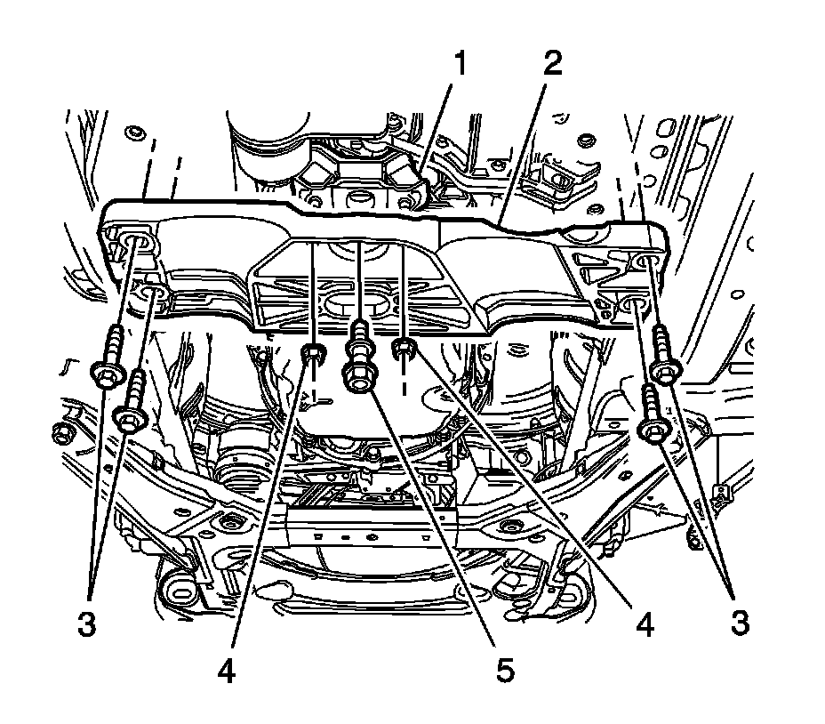 5. Remove the transmission support retaining bolts (3), then remove the transmission support (2) from the vehicle