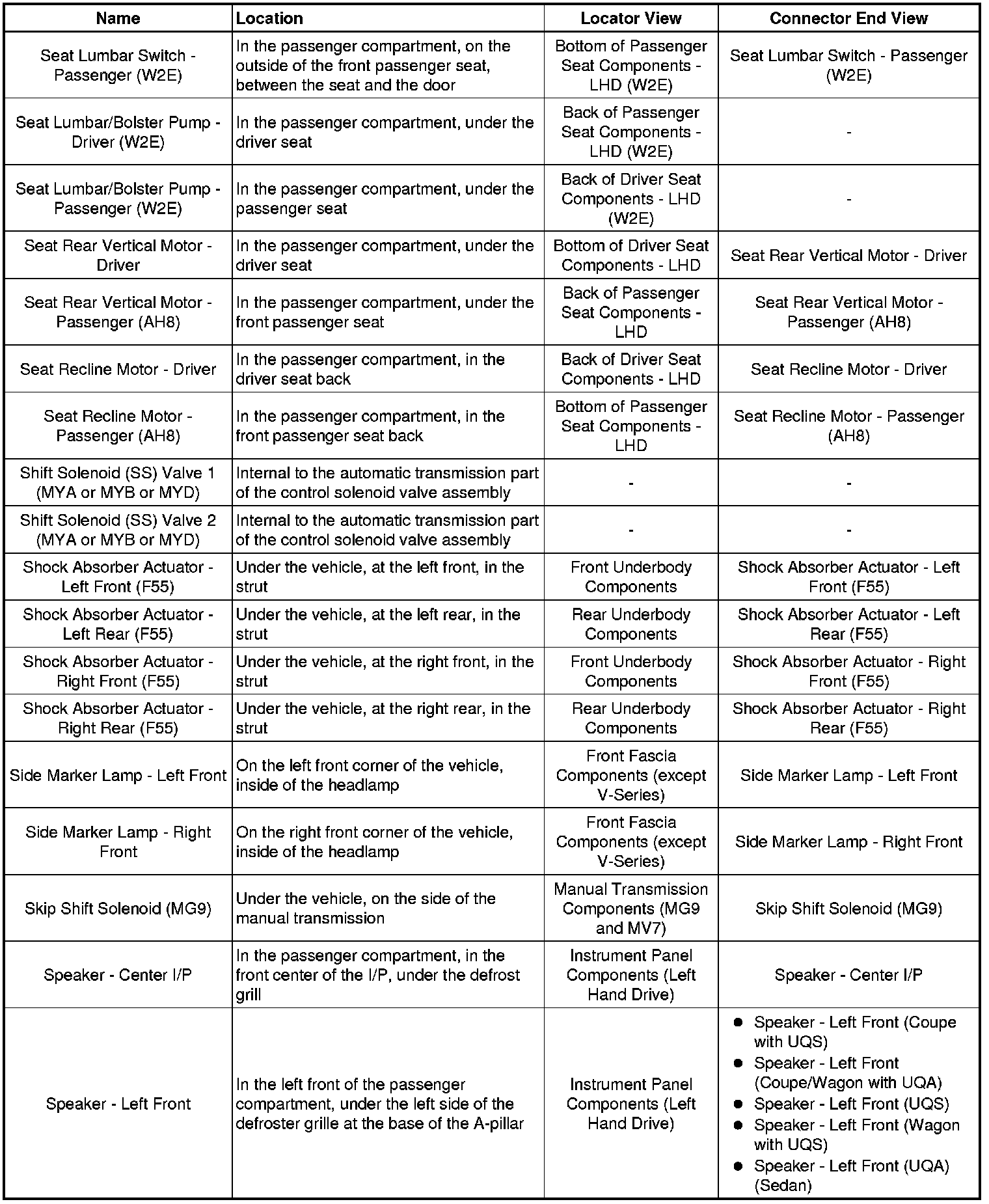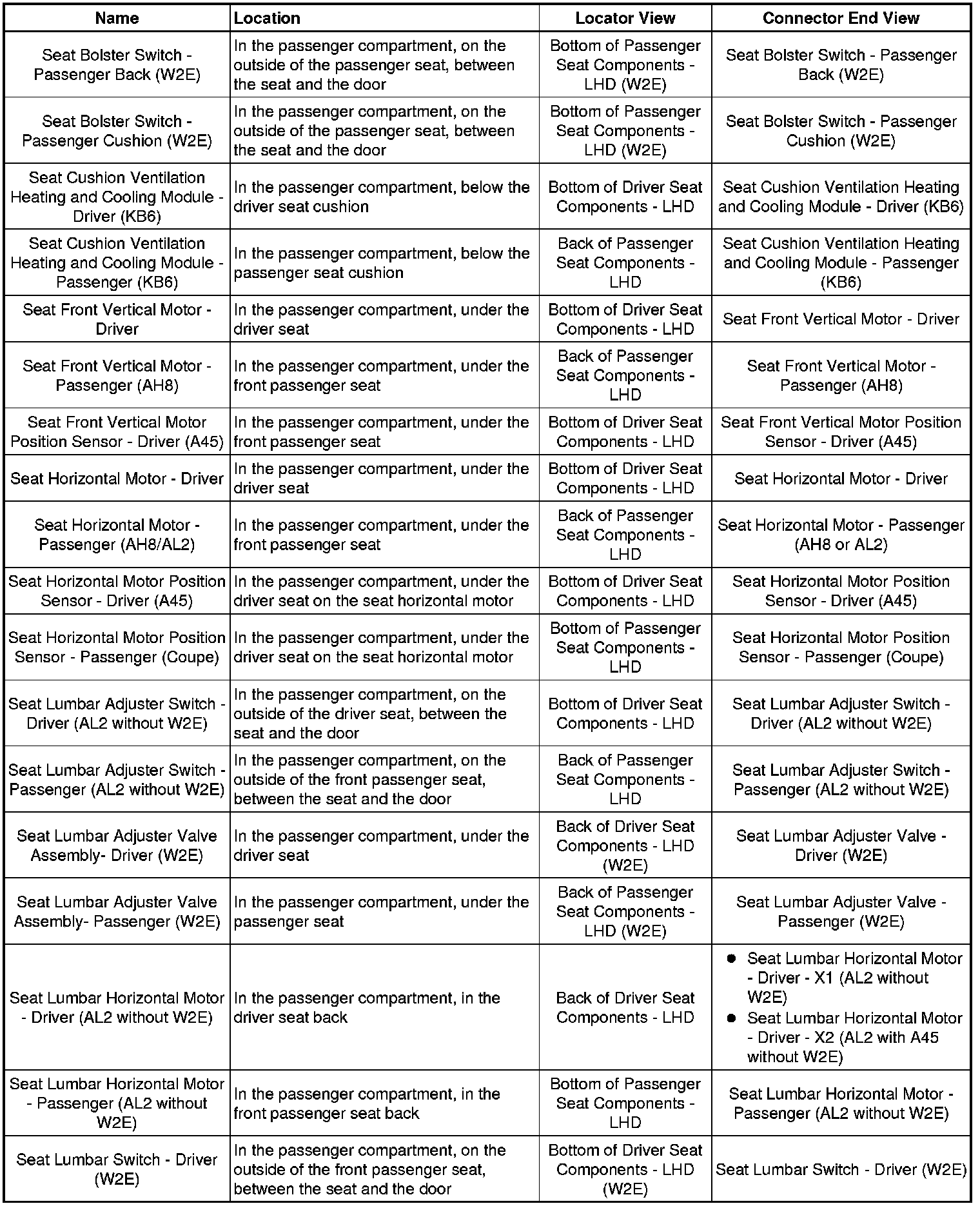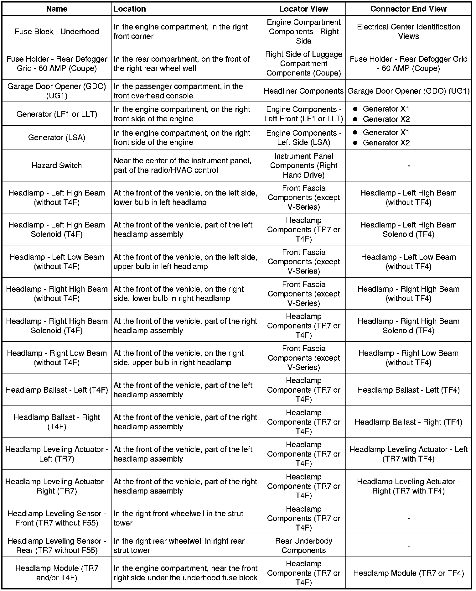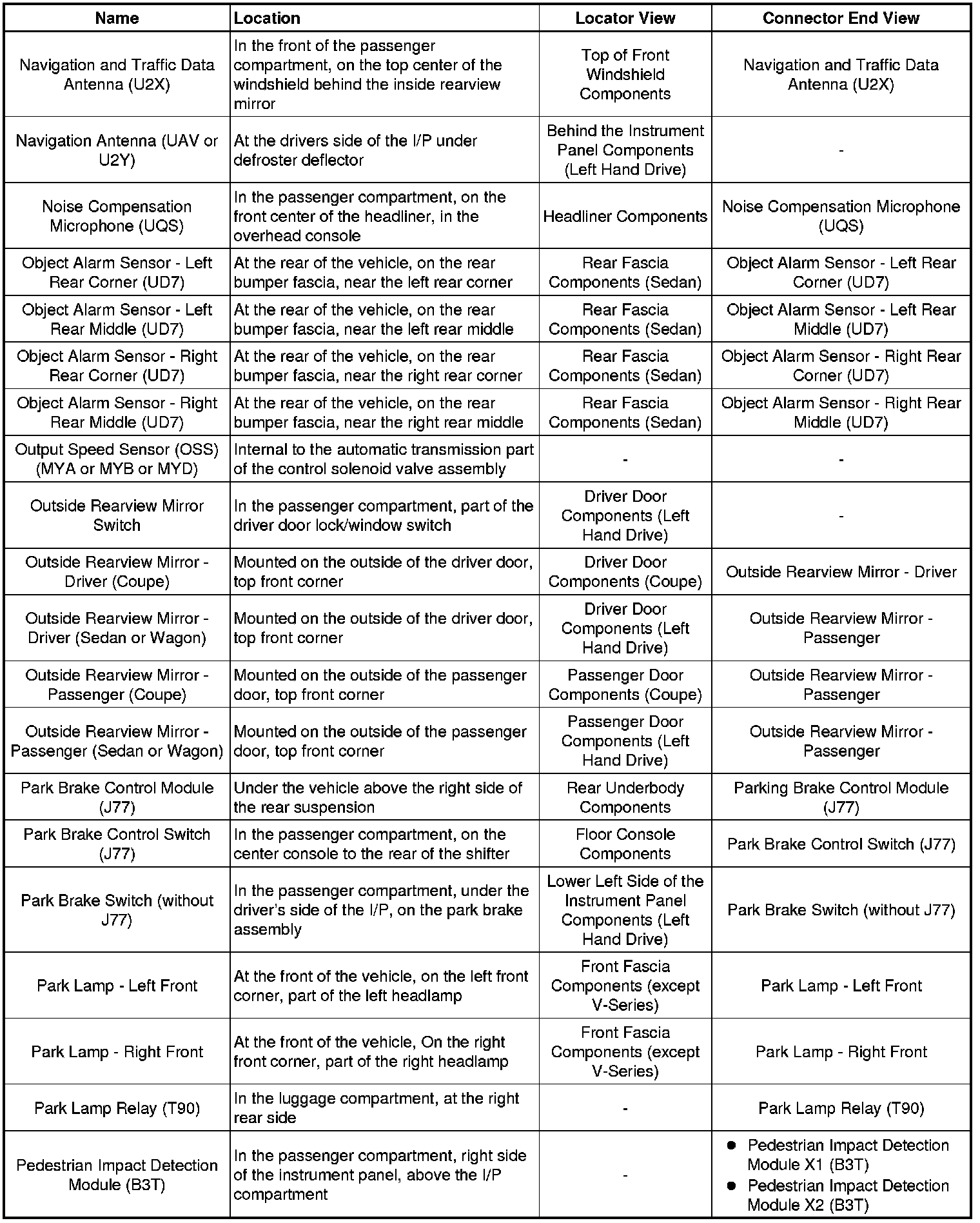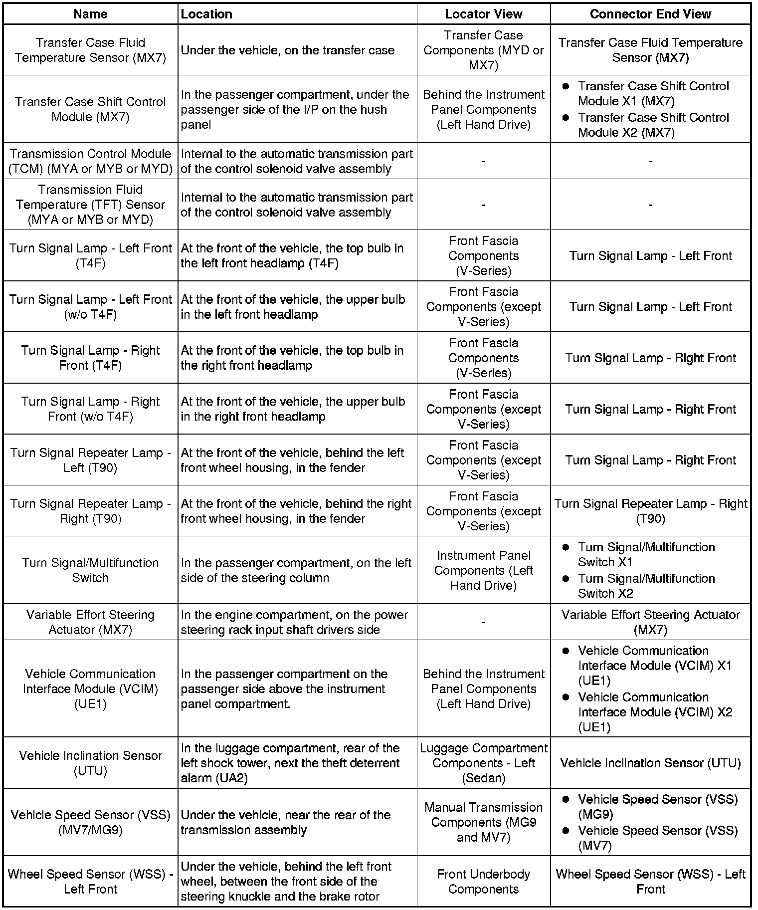 Master Electrical Component List